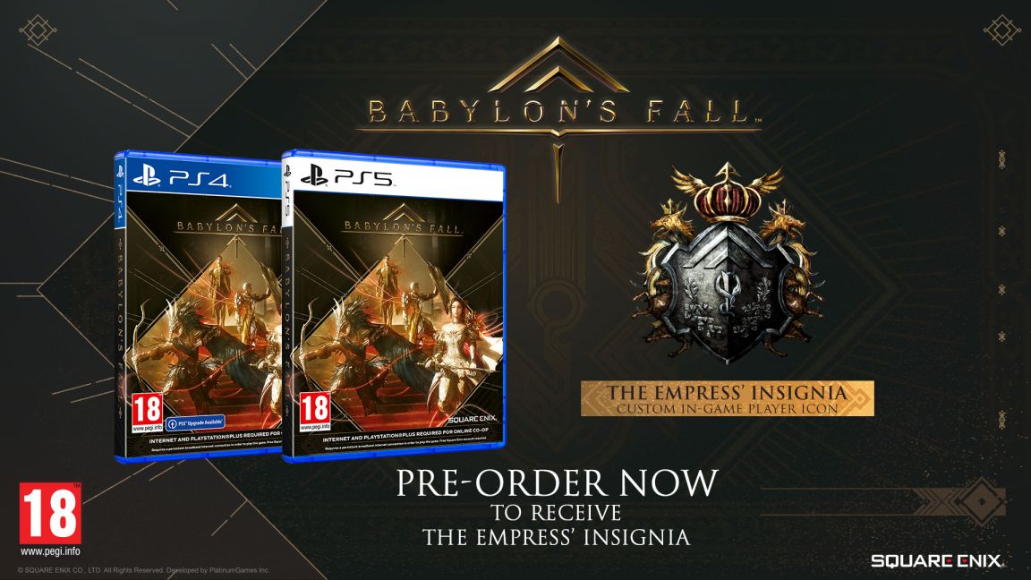 Pre-order BABYLON'S FALL to obtain a unique customisation for your character, The Empress' Insignia. Show off to other Sentinels that you were one of the first to obtain a Gideon Coffin and become a Sentinel.